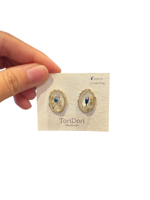 アリウムのオーバルピアス・ブルー