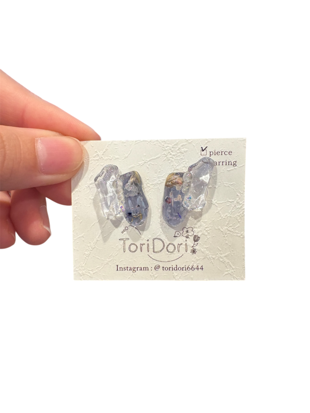 鉱石型クリア耳飾り/モーブブルー