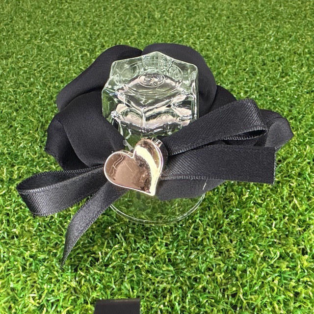ハートチャームの大人リボンシュシュ