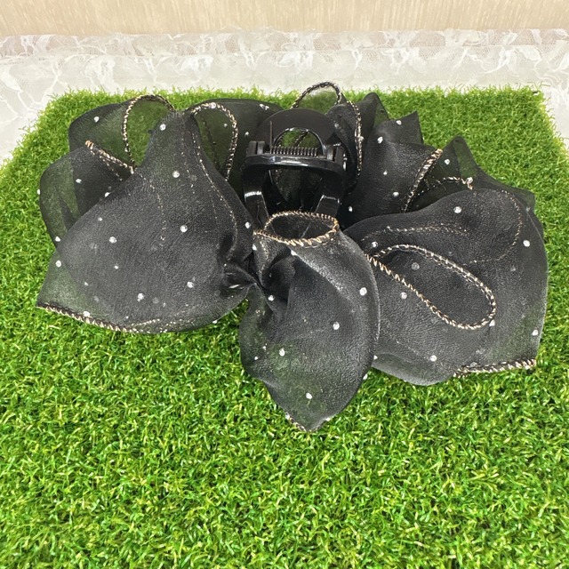 「森で見つけた、ちょっと大人なリボン」 森の奥でふわりと風に揺れる黒いリボンを見つけました。 やわらかで透け感のあるオーガンジーが、 光を受けてやさしくきらめきます。 ラインを縁取るコードが形をしっかり保ちつつ、 大きめリボンでもふんわり立体的に。 シンプルな黒だからこそ、甘さと上品さを両方楽しめます。 ビジューつきは、木漏れ日みたいにきらりと光るアクセント。 カジュアルなまとめ髪も、ちょっと特別な日も、 このリボンがそっと背筋を伸ばしてくれるおすましアイテムです。 (こちらは*ラインストーンあり*の注文ページです) ⸻ moffのひとこと 「このリボン、ちょっと大人におすまししたい日にぴったりだよ。 森のおうちから、そっとお届けします。」 ⸻ 【ポイント】 ・透け感のあるオーガンジー素材 ・立体感のあるコード縁取りデザイン ・大きめリボンでも軽やかな印象 ・選べるラインストーンつき/なし ・簡単に留められるクリップタイプ ⸻ 【ギフトにもおすすめ】 ちょっと特別な日のおめかしにも、 大切な人への「ありがとう」にもぴったりです。 森のおうちから、小さなときめきをお届けします。 サイズ・容量 ブラック素材:合成樹脂+ポリエステル ブラック*ラインストーン素材:合成樹脂+ポリエステル+ラインストーン カラー:ブラック/ブラック*ラインストーン サイズ: 長さ:約16cm 高さ:約12cm 幅:約3cm 生産国:中国 ※包装に関しての注意点:こちらの商品は激 安で販売しているため、化粧箱は付いていませんが、商品に傷付かないよう簡易包装で発送とさせていただきます。 ※海外輸入品のため、商品の細部仕様は多少異なる場合がございます。予めご了承の上、ご注文お願い致します。 規格 ■生産地:中国 ■素材・成分:ブラック素材:合成樹脂+ポリエステル ブラック*ラインストーン素材:合成樹脂+ポリエステル+ラインストーン ■パッケージ:個包装 ■製造年:2023 ■商品札:無し