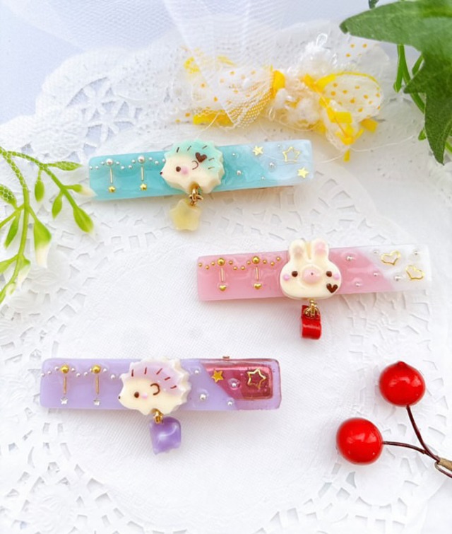 ハリネズミのキャンディヘアクリップ フェイクスイーツ