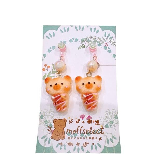 Purple Cream Jewelry オリジナルデザインアクセサリー リボンモチーフとクマモチーフの キュートなモチーフのピアス・イヤリング(clip-on earrings)♪ ホログラムクリアのくまチャームやビーズが耳元を華やかにしてくれます♡ ゴールドカラーのリボンチャームが小さいタイプと パール付きタイプの2種類ございます♡ イヤリング(clip-on earrings)はクリップタイプ♪
