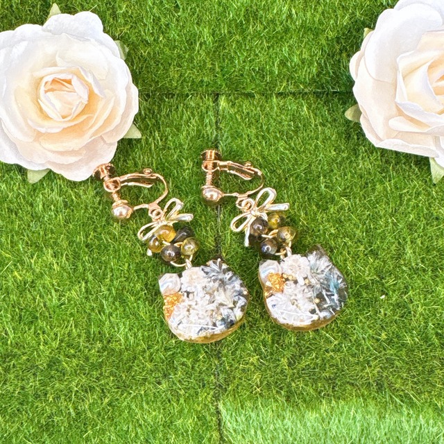 【手作りアクセサリー】森のときめきイヤリング♡01