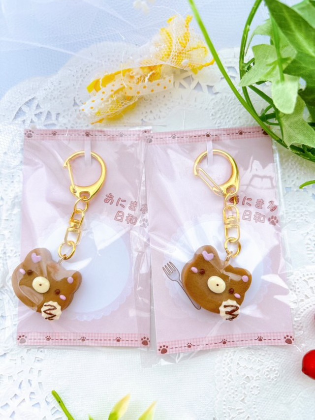 くまのあにまるホットケーキキーホルダー⭐︎フェイクスイーツ ハンドメイド