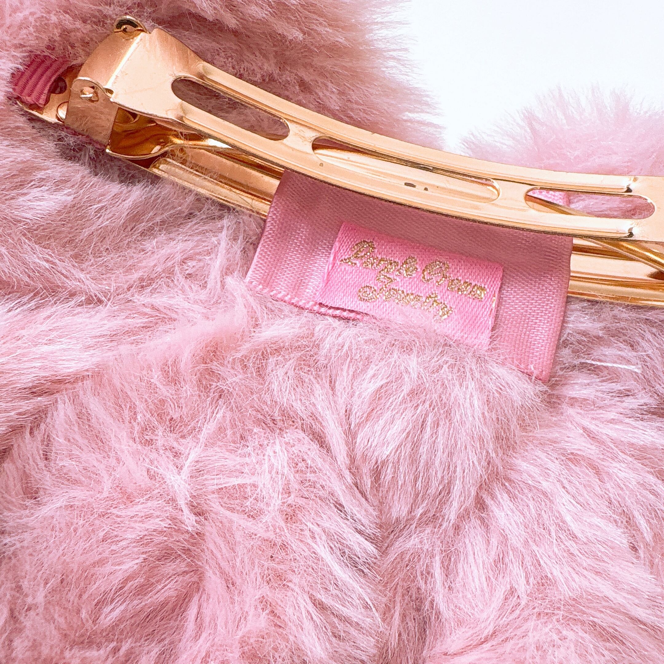 ・ふわふわファーリボンにくまさんとハートのチャーム