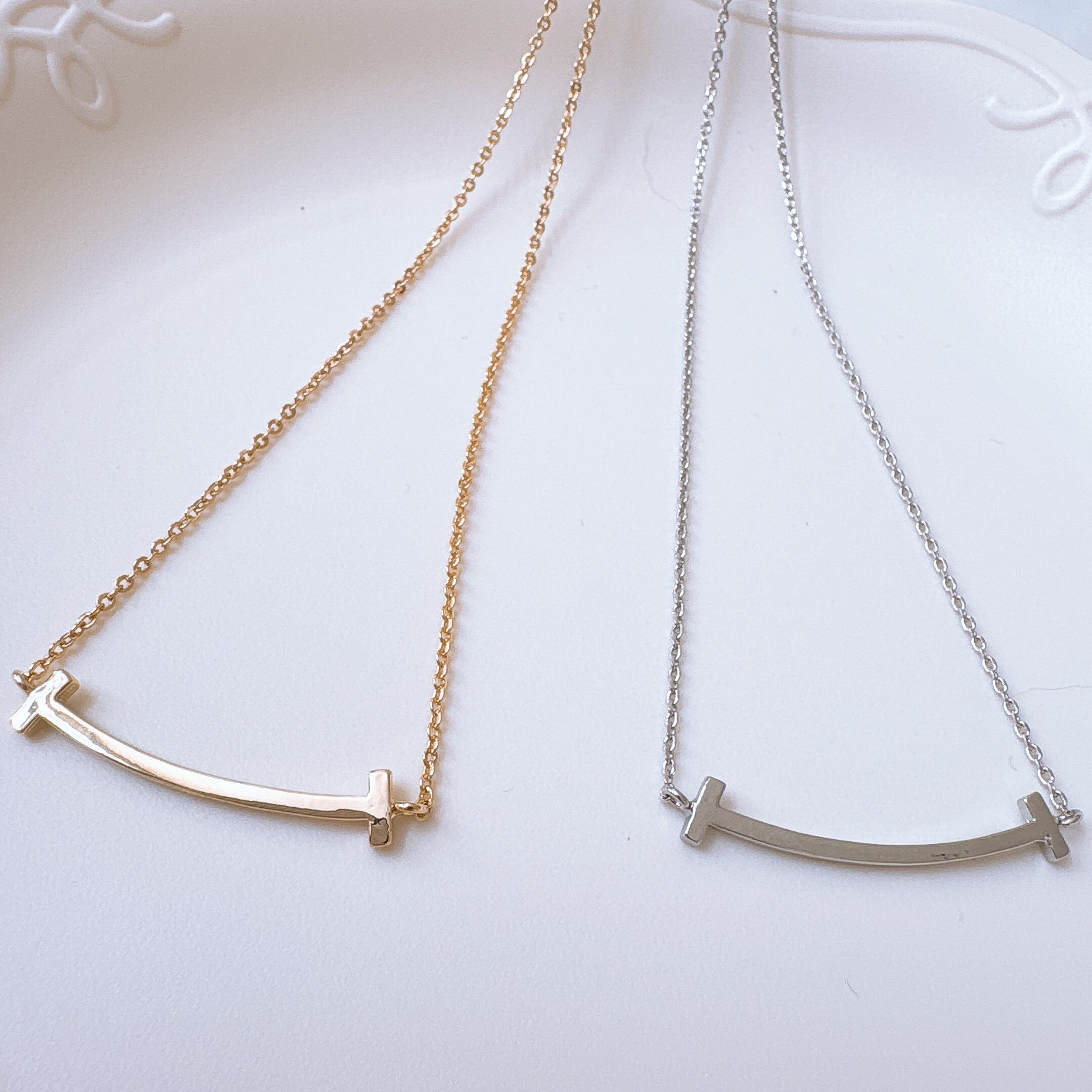 スマイルライン メタルネックレス|大人上品な輝き・カーブデザイン・韓国アクセサリー