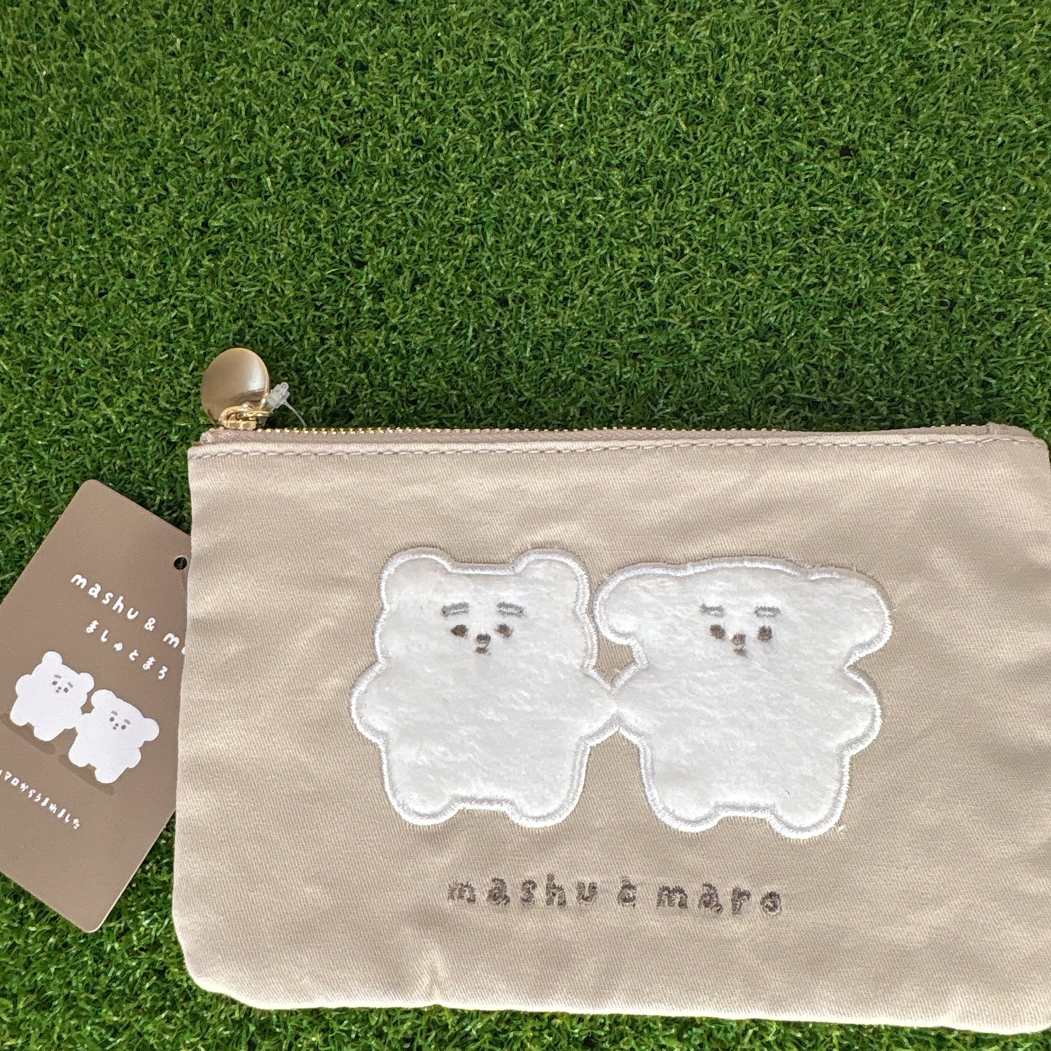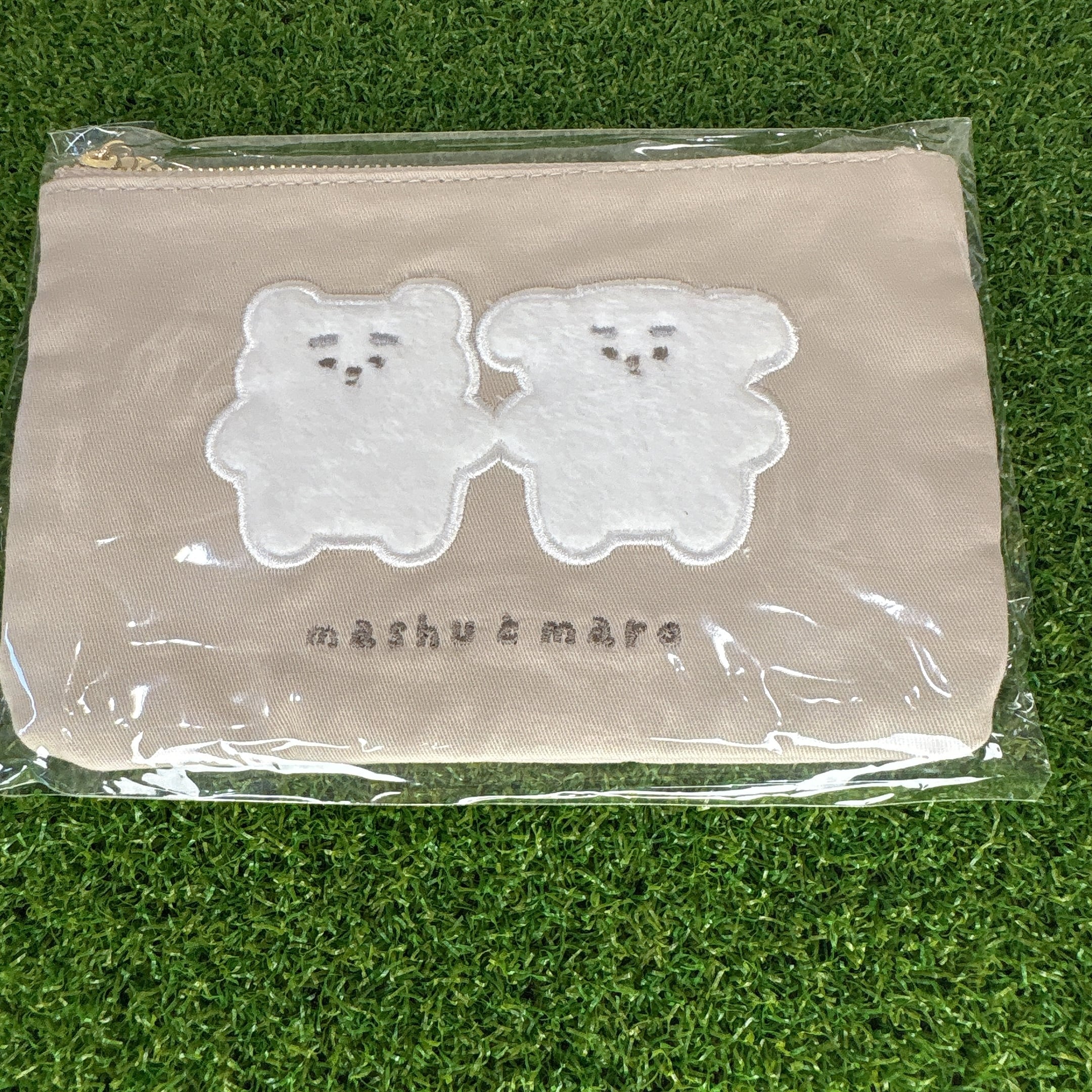 ましゅまろから生まれた「ましゅ」と「まろ」が、くたっとした可愛さそのままにポーチになったよ