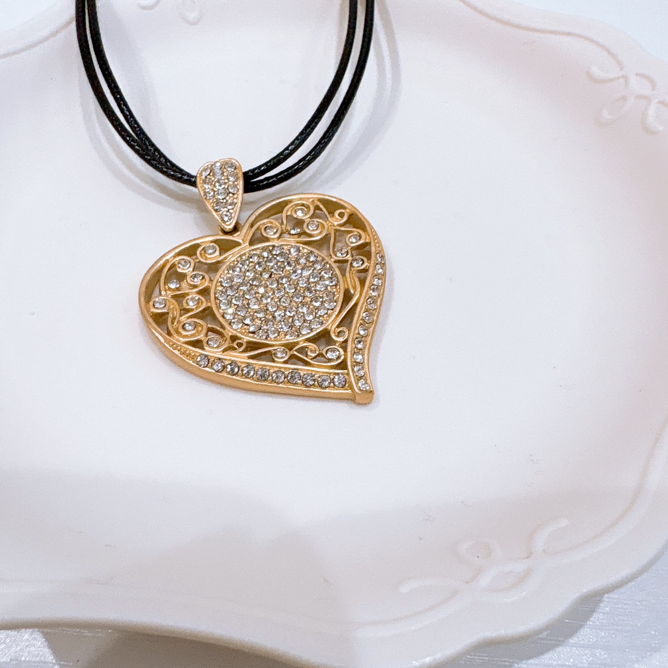アンティーク調のゴールドハートには、小さなきらめきをひとつひとつ閉じ込めて。