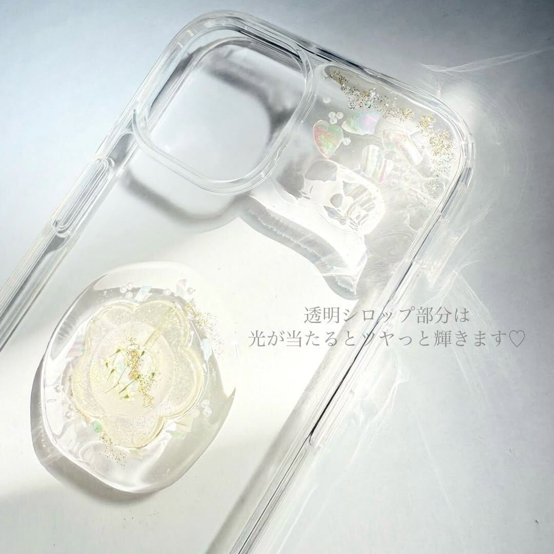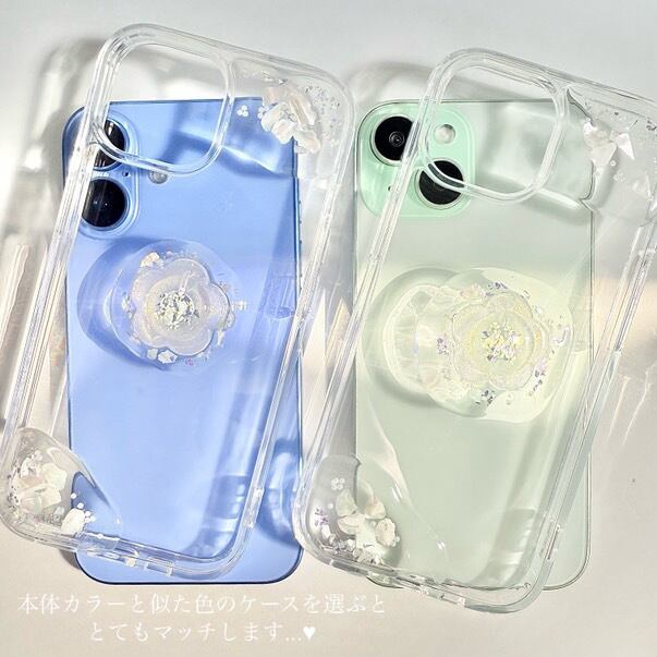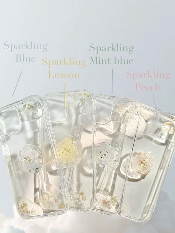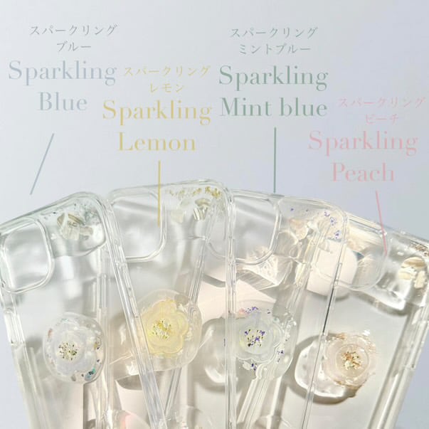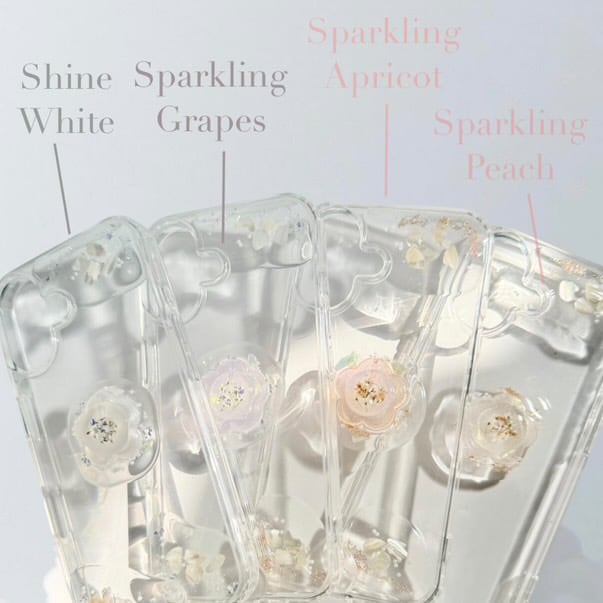 本物のお花を閉じ込めた透明感たっぷりのデザインは、flw.(フラワ)様とのコラボ限定。moffselectだけの特別仕様だよ。