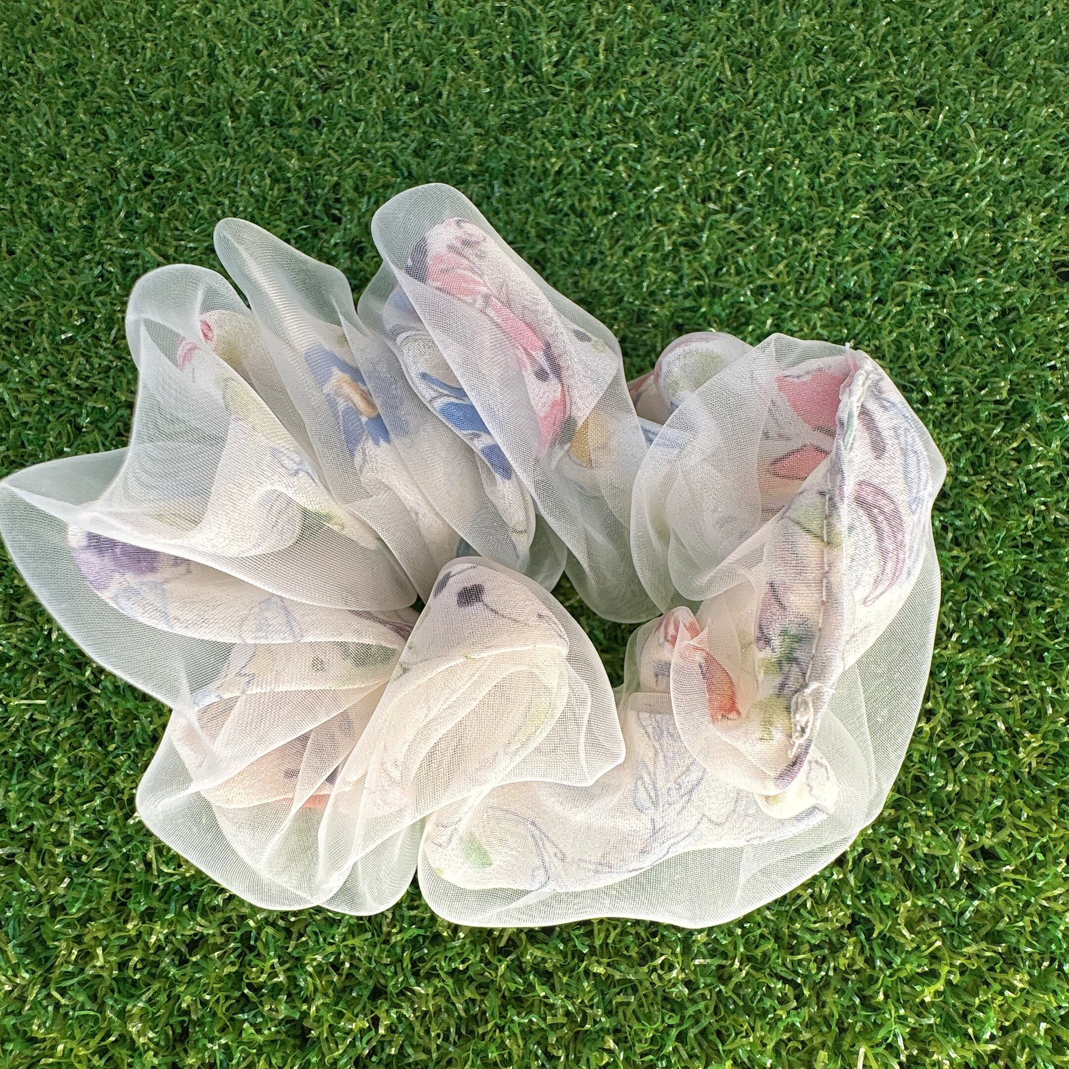 ・透け感のあるオーガンジーに、淡く優しいフラワープリント