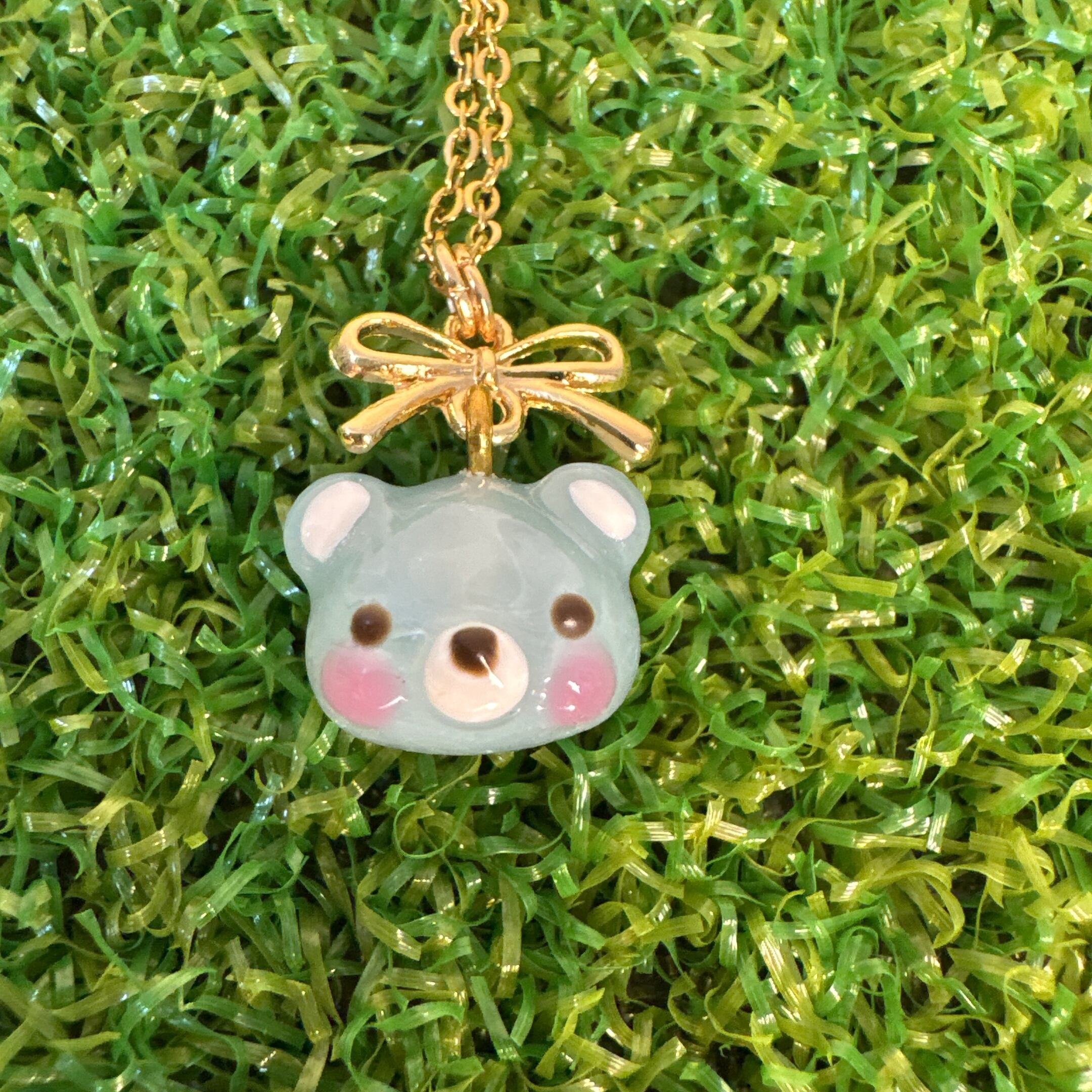 【手作りアクセサリー】森のくまさんネックレス♡01