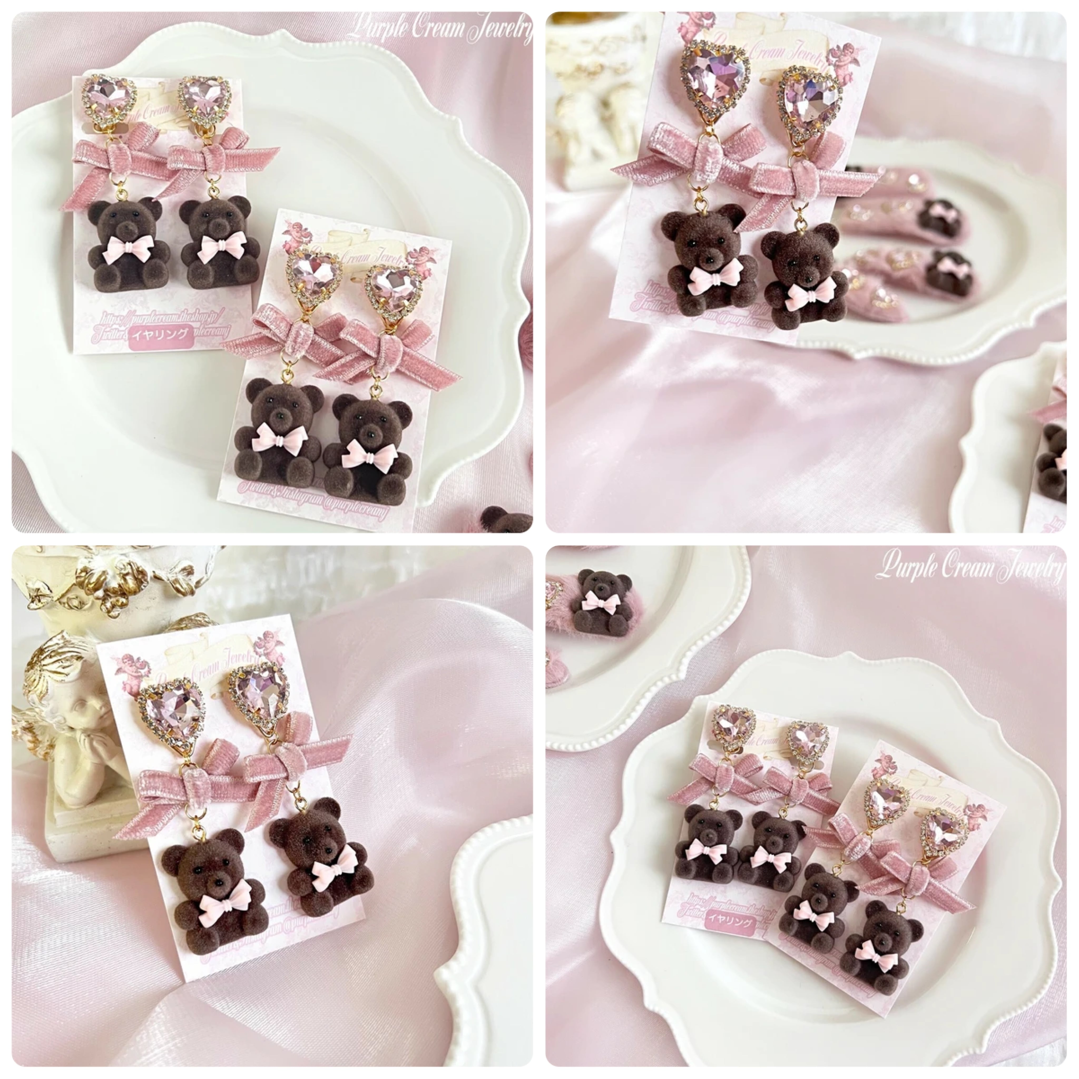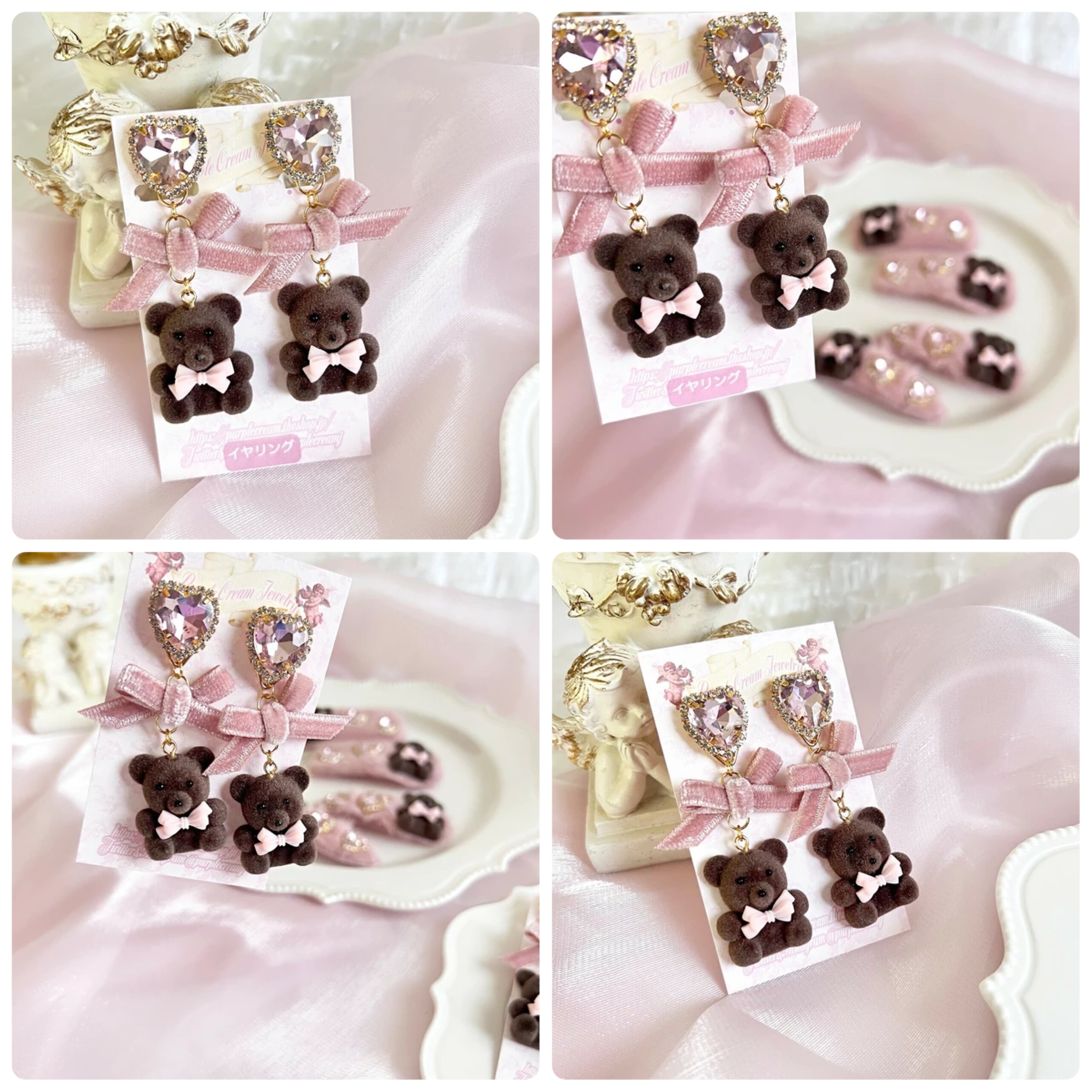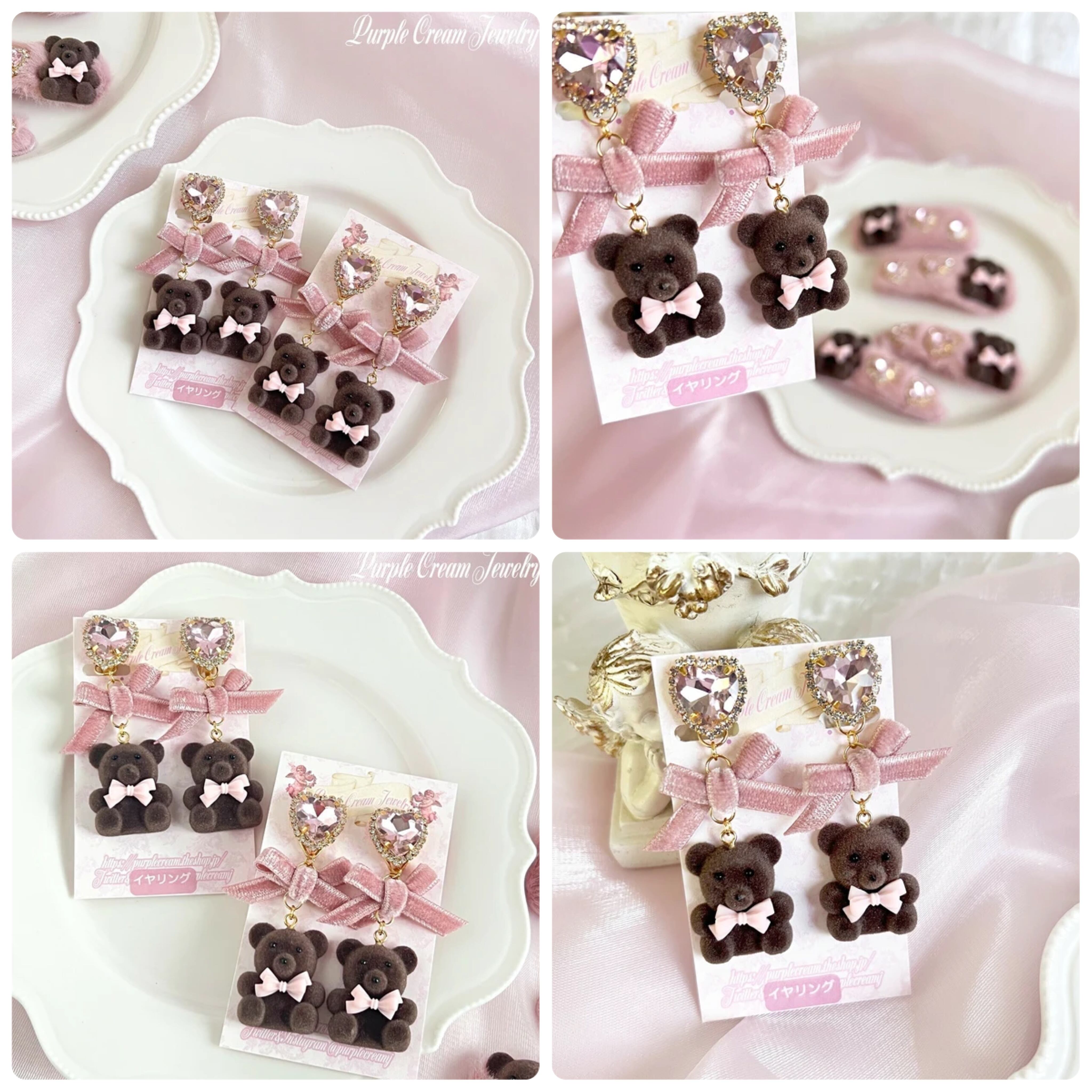 Flocky Bear ピアス・イヤリング P1608 クマ くま ベア ベロアリボン かわいい ハート アクセサリー