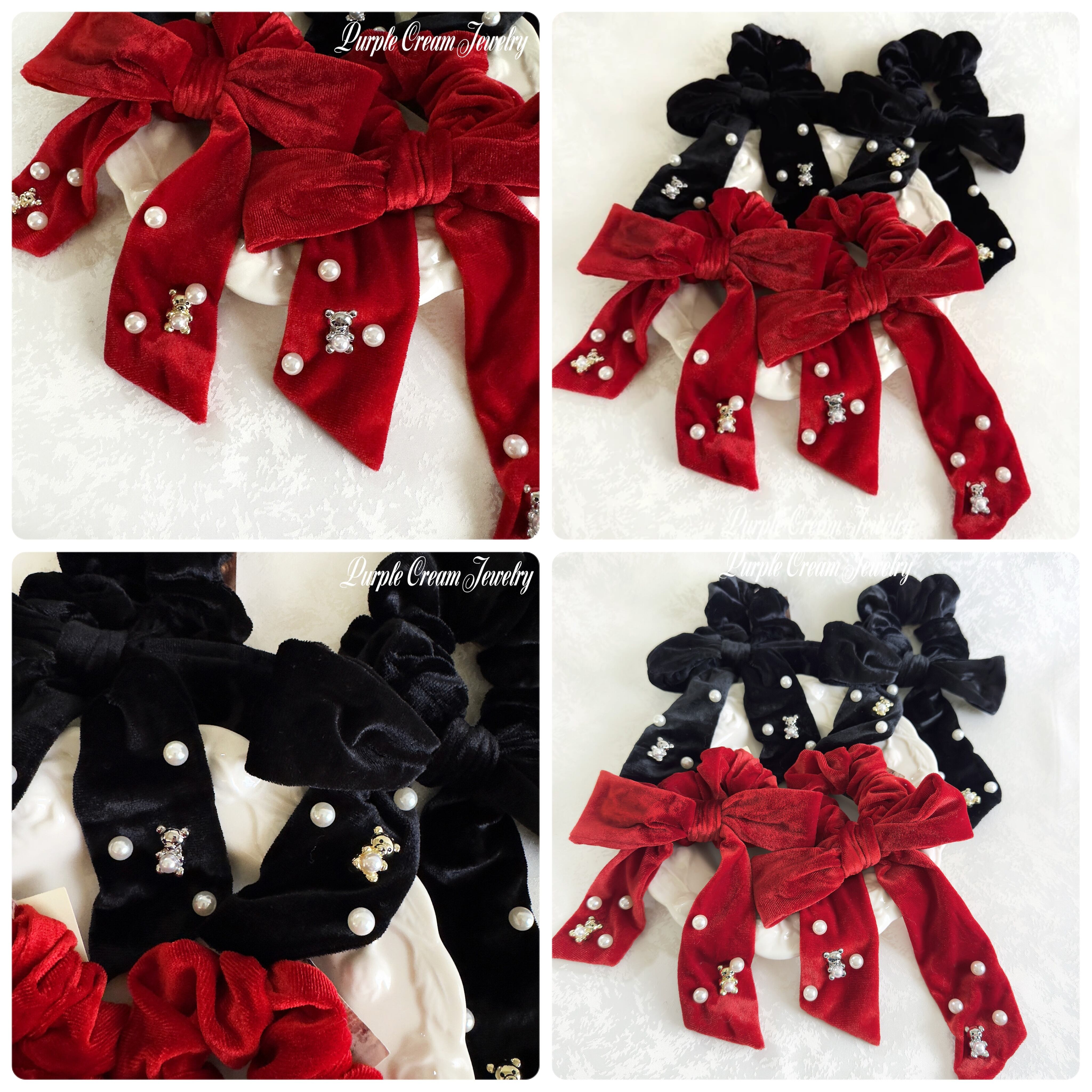 ベロアリボンシュシュ P1636 くま パール 秋冬 ベルベット